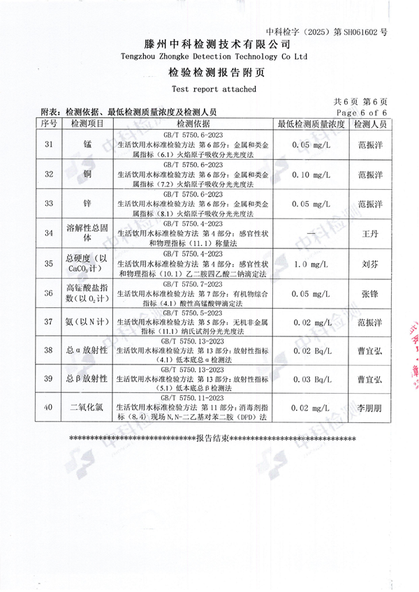 2025年6月份生活飲用水水質(zhì)報告(末梢水)