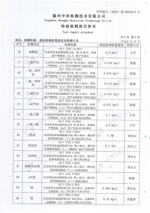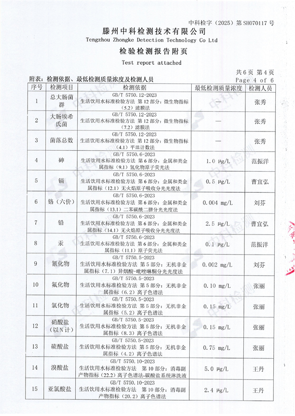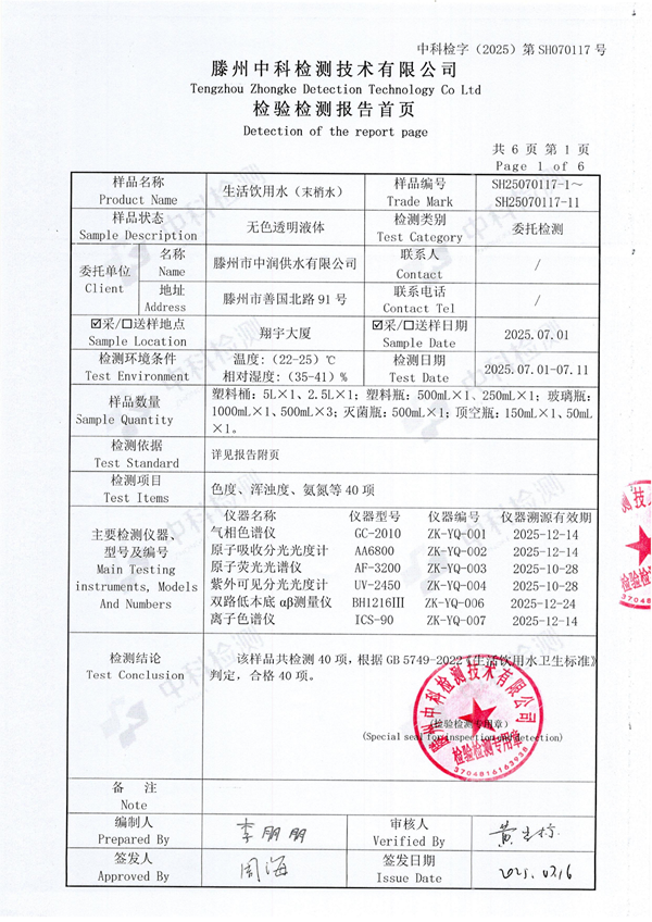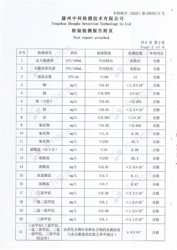 2025年7月份生活飲用水水質(zhì)報(bào)告(末梢水)