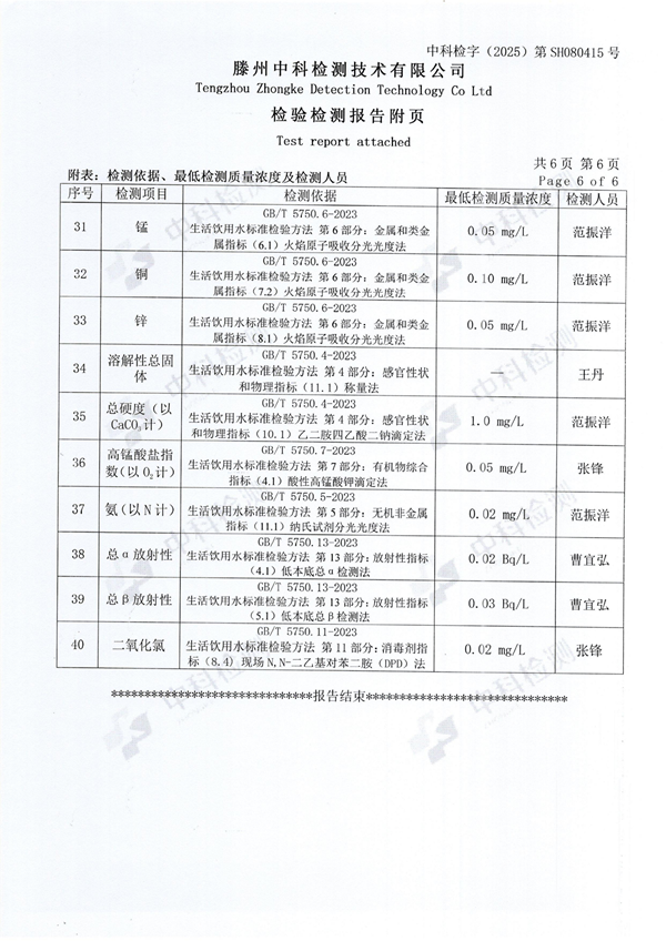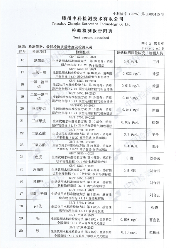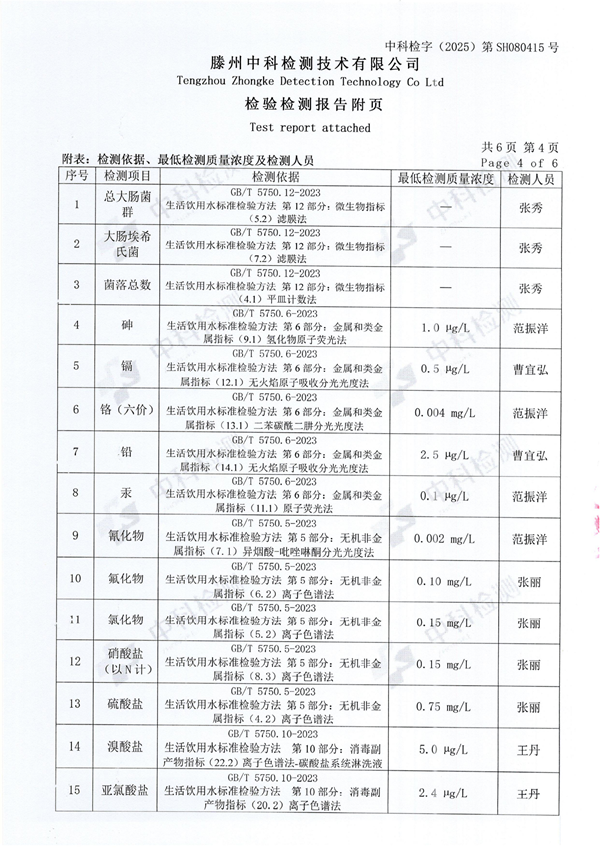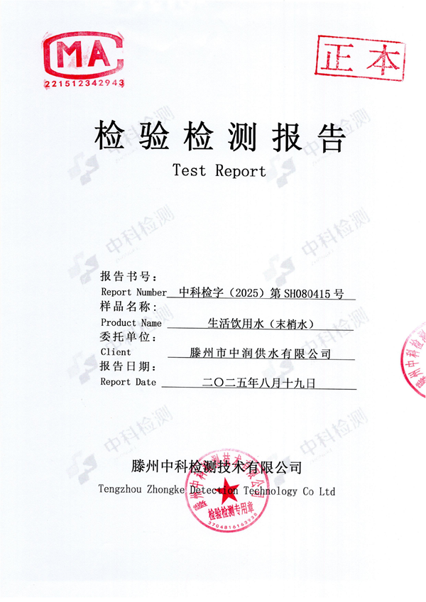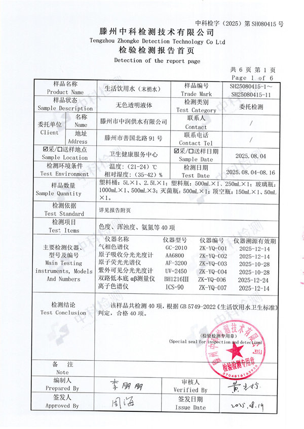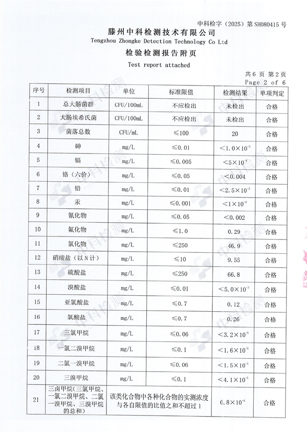 2025年8月份生活飲用水水質(zhì)報(bào)告(末梢水)