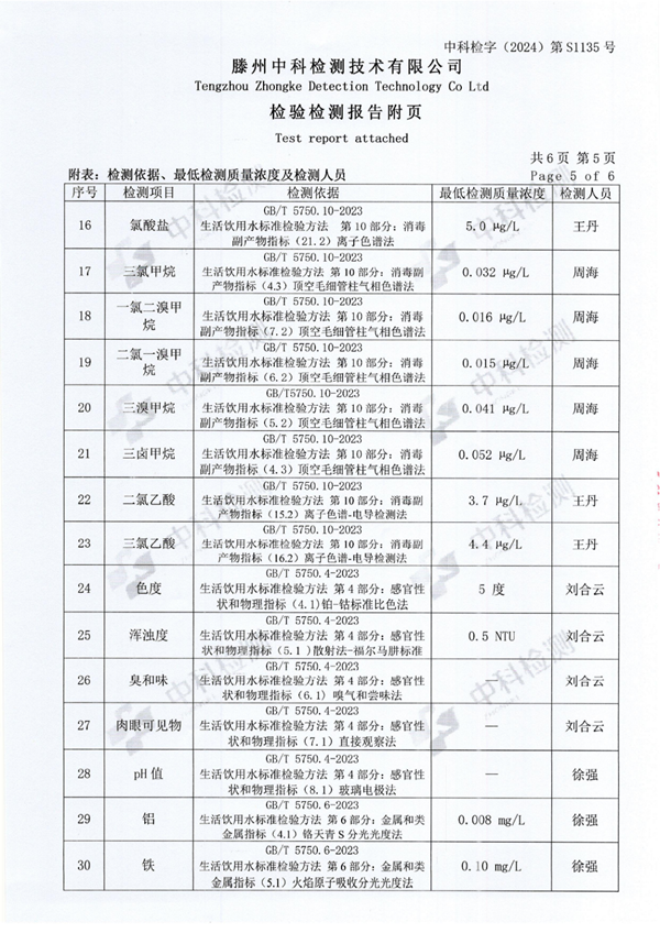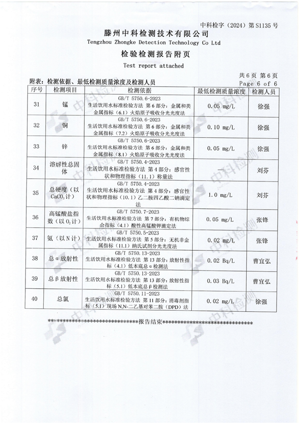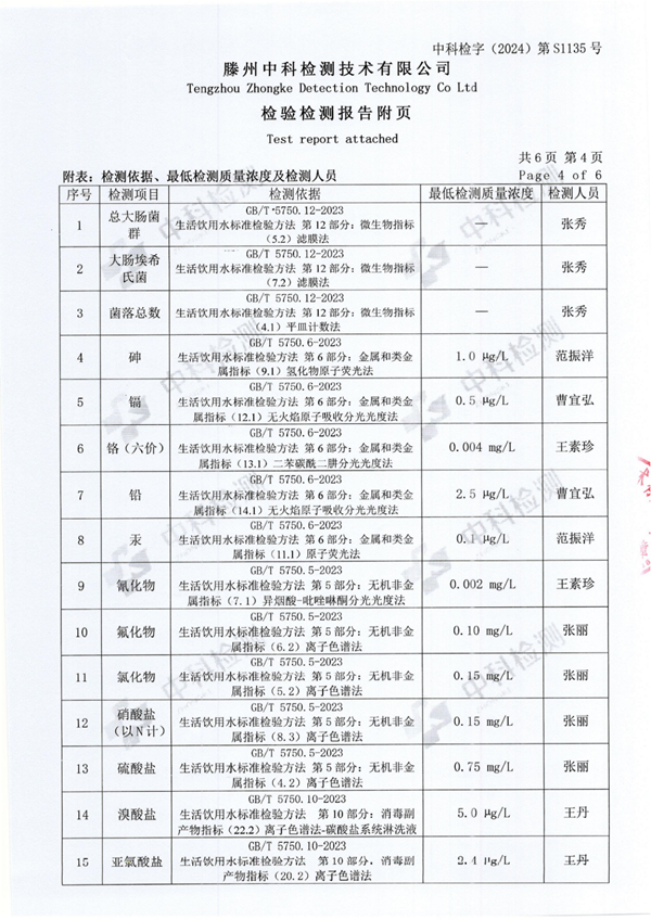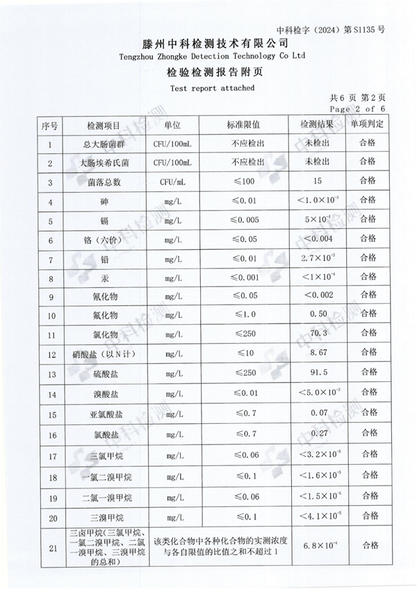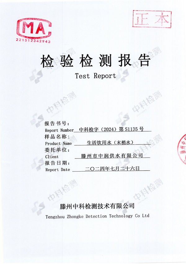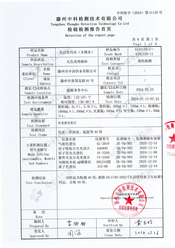 2024年7月份生活飲用水水質(zhì)報(bào)告(末梢水)
