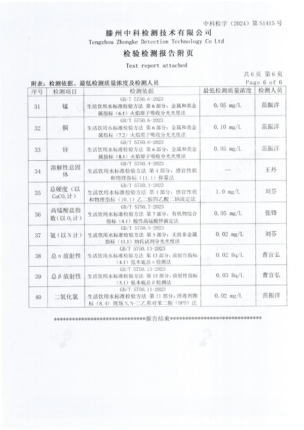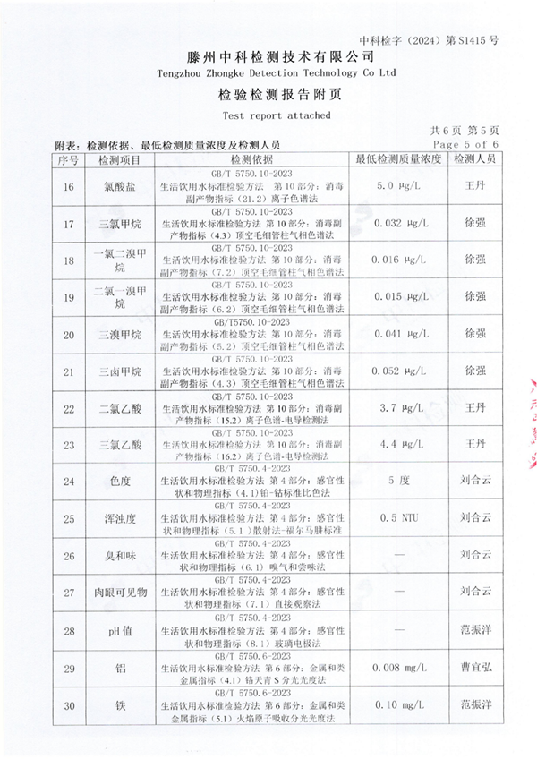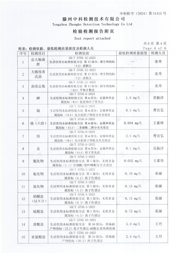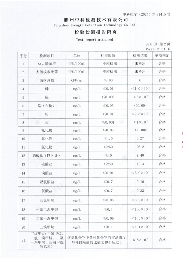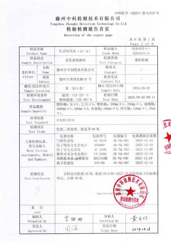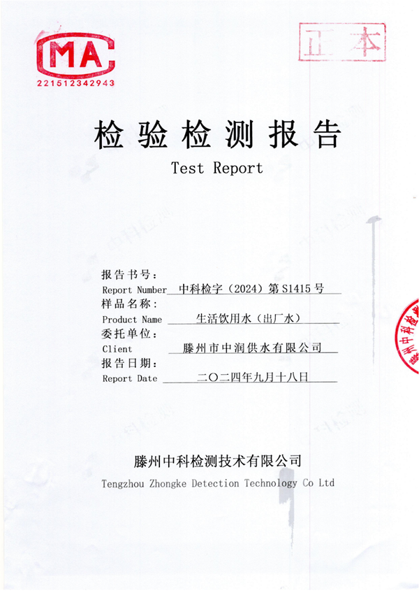 2024年9月份生活飲用水水質(zhì)報(bào)告(出廠水)