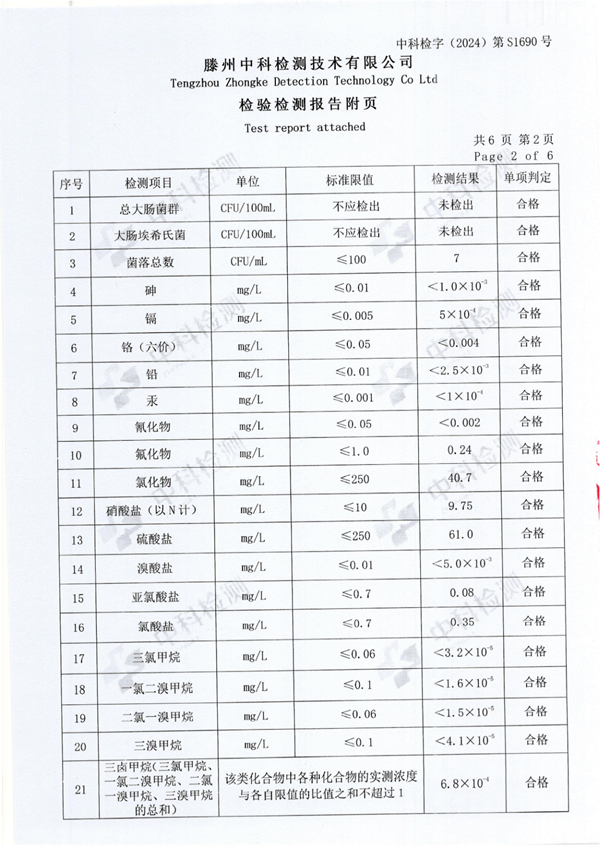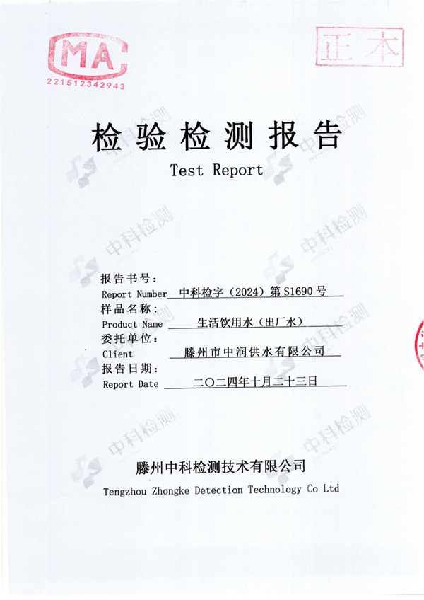 2024年10月份生活飲用水水質(zhì)報告(出廠水)