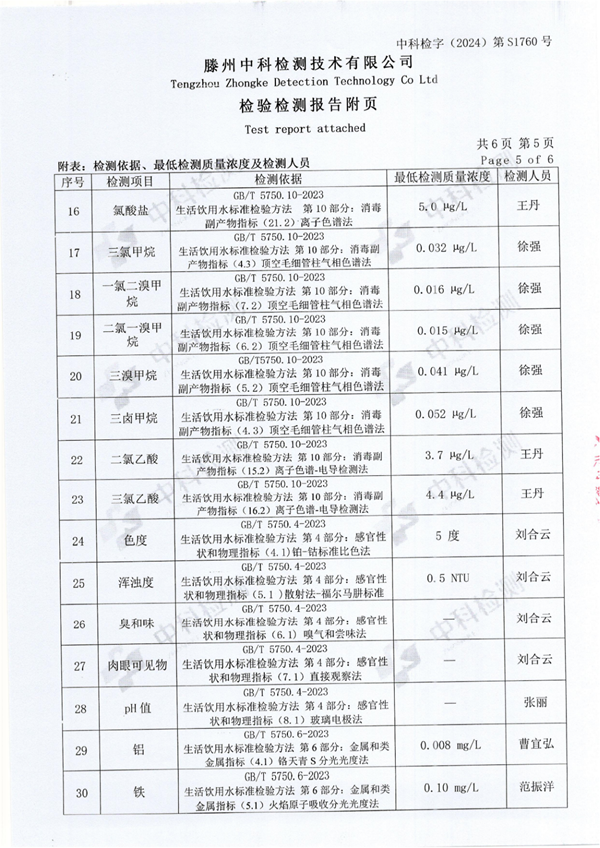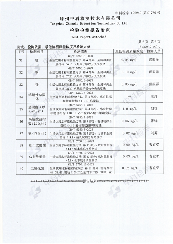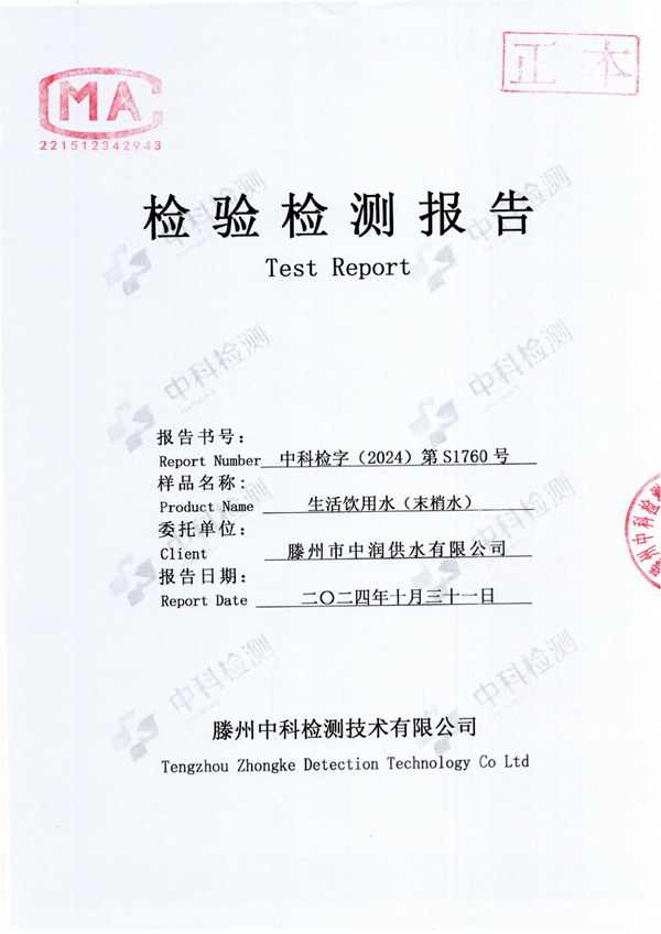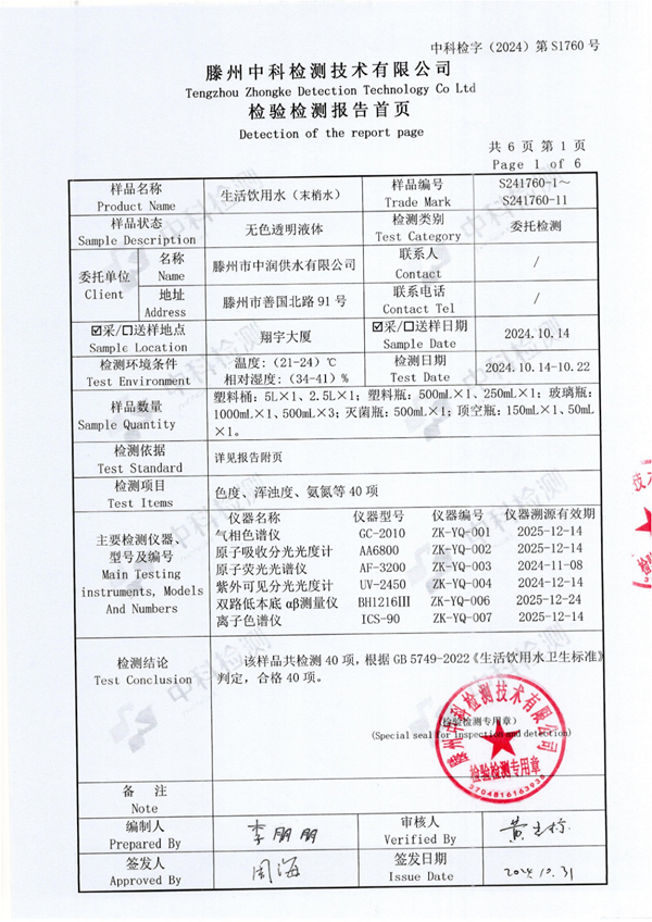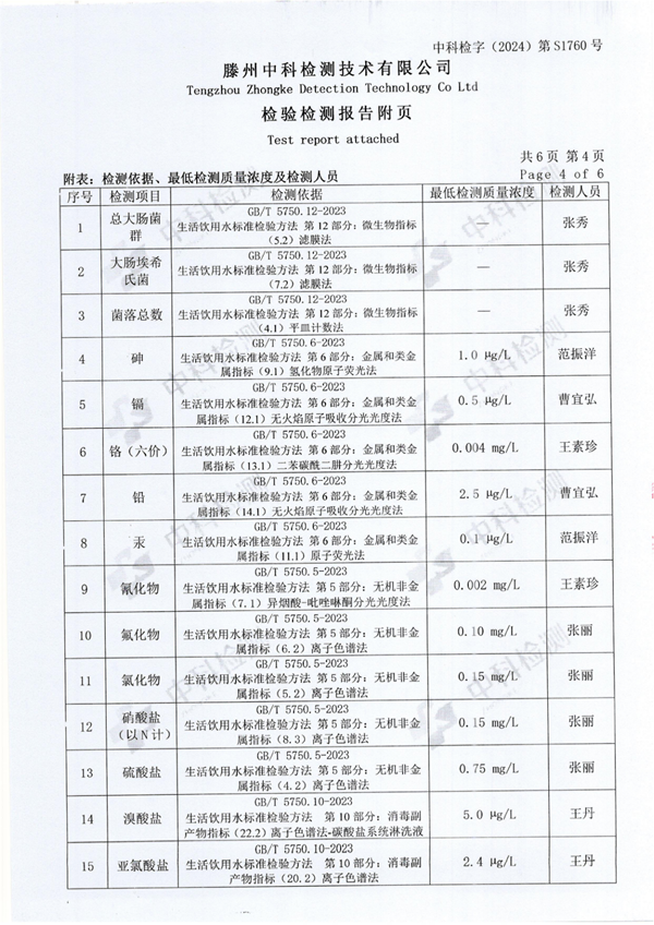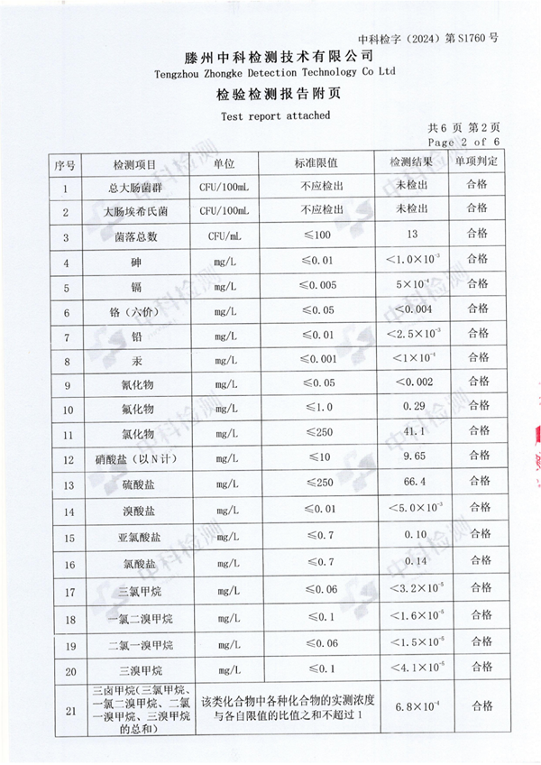 2024年10月份生活飲用水水質(zhì)報(bào)告(末梢水)