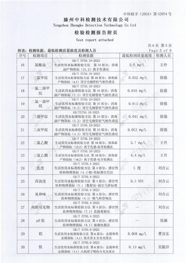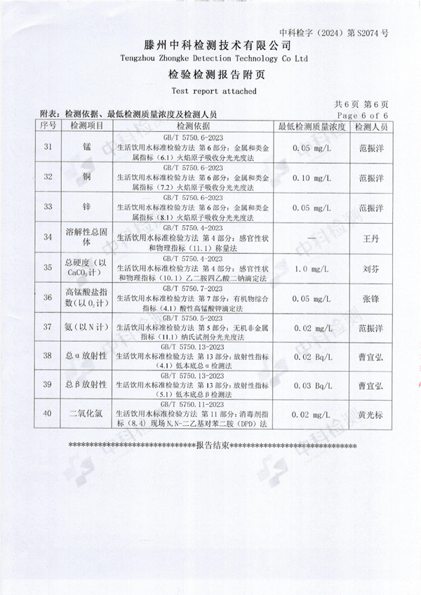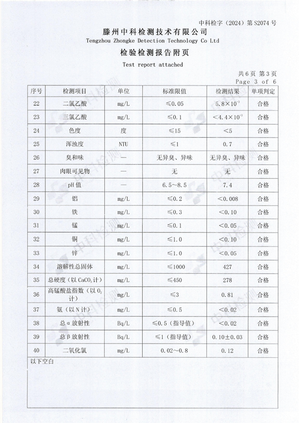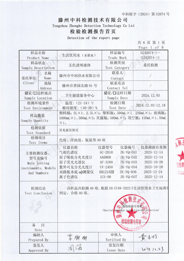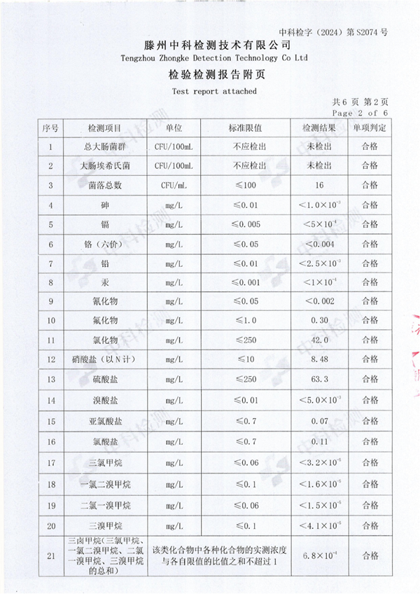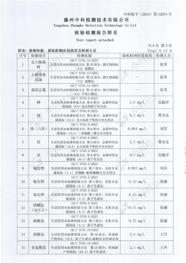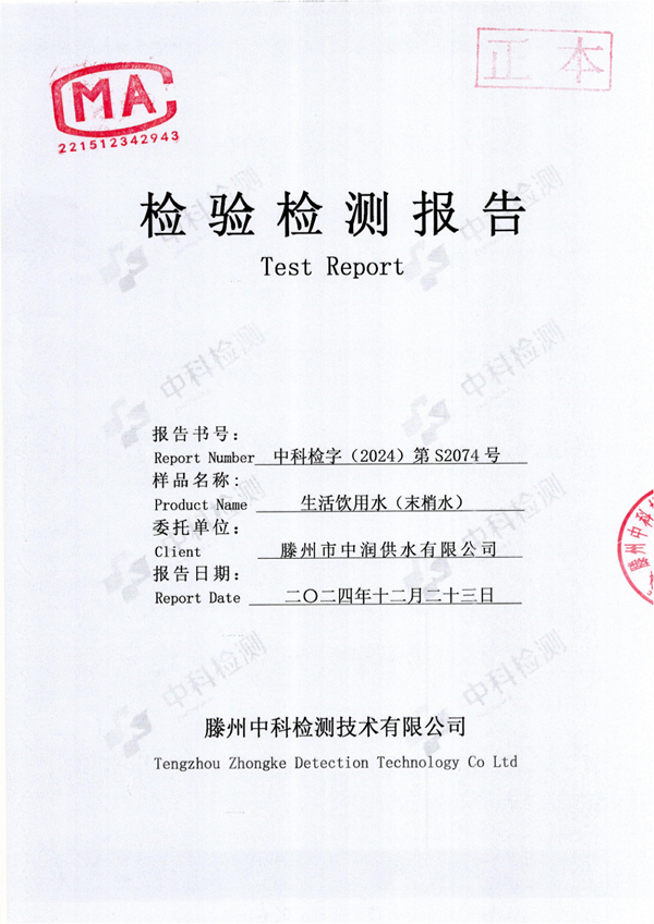 2024年12月份生活飲用水水質(zhì)報(bào)告(末梢水)