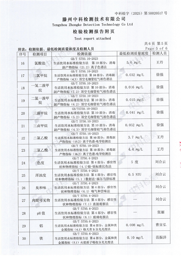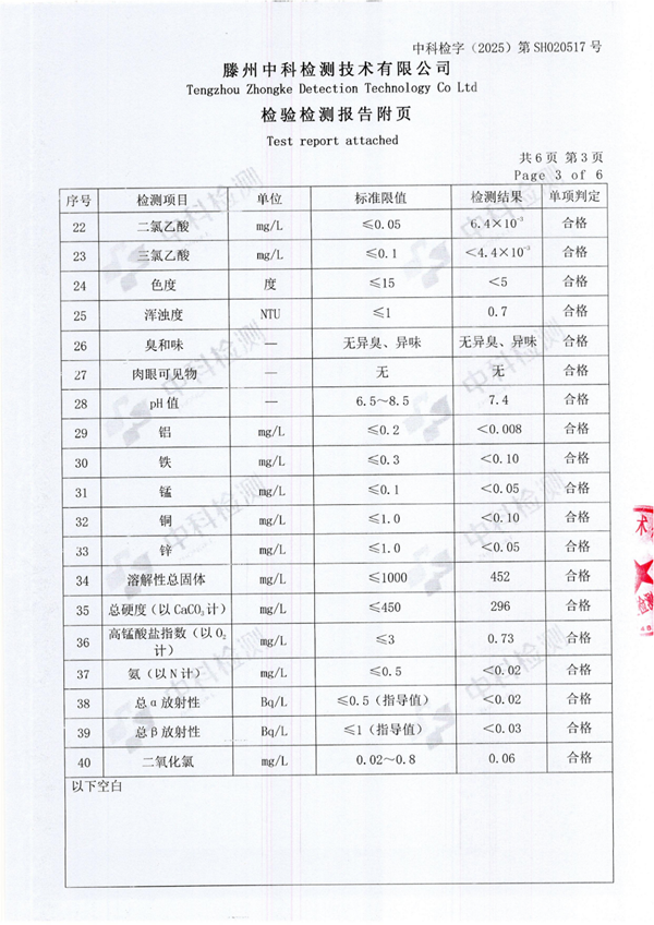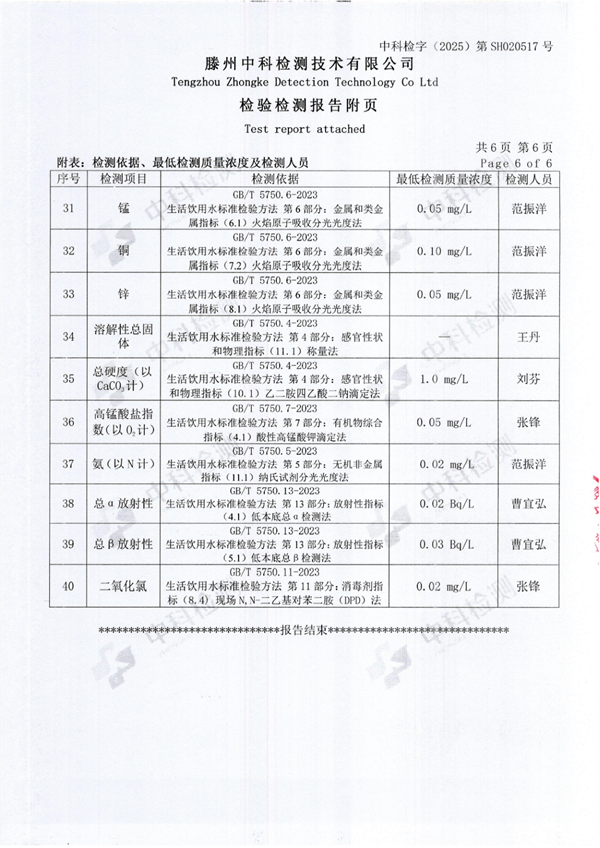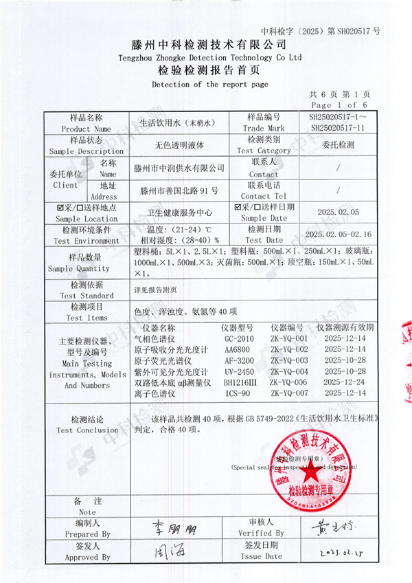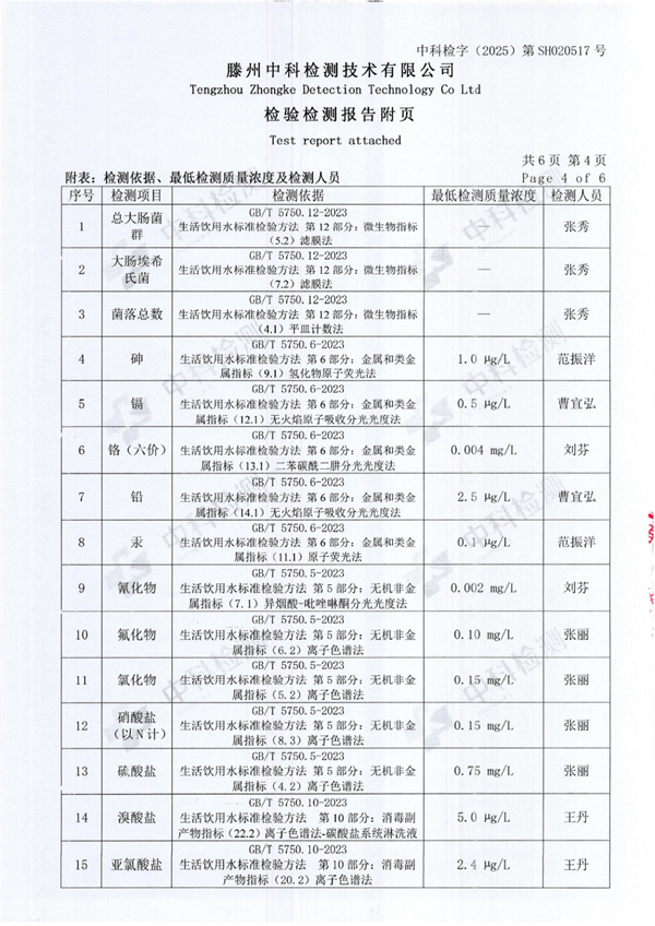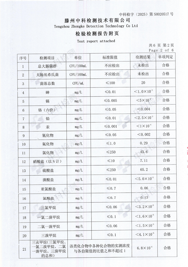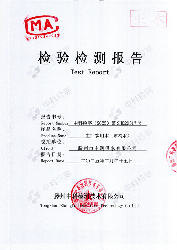 2025年2月份生活飲用水水質(zhì)報(bào)告(末梢水)