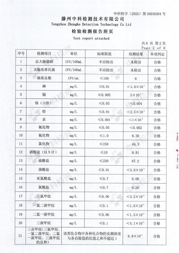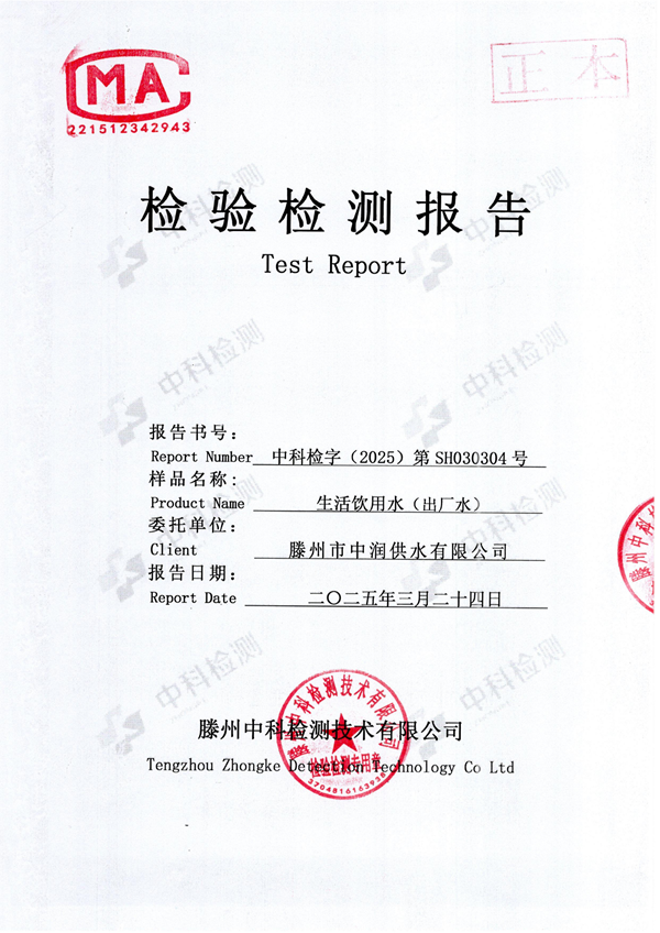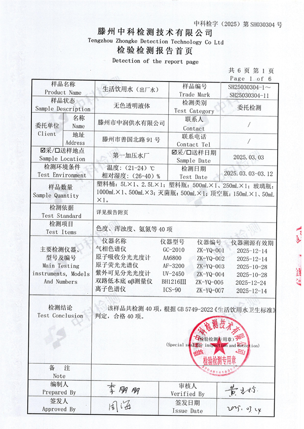 2025年3月份生活飲用水水質(zhì)報告(出廠水)