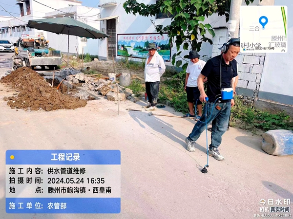 經(jīng)現(xiàn)場查看,鮑溝鎮(zhèn)西皇甫村中心街路面出現(xiàn)積水,且積水漫延較快。為最大程度降低因搶修對道路交通安全造成的影響和對路面造成的損壞,中潤供水公司立即調(diào)派檢漏人員對漏點(diǎn)進(jìn)行精準(zhǔn)定位,并與因搶修造成停水的村委會及村內(nèi)管水員做好溝通解釋工作。經(jīng)過三個半小時的奮力搶修,順利完成PE110供水管道修復(fù)工作,恢復(fù)正常供水,圓滿完成搶修任務(wù)。